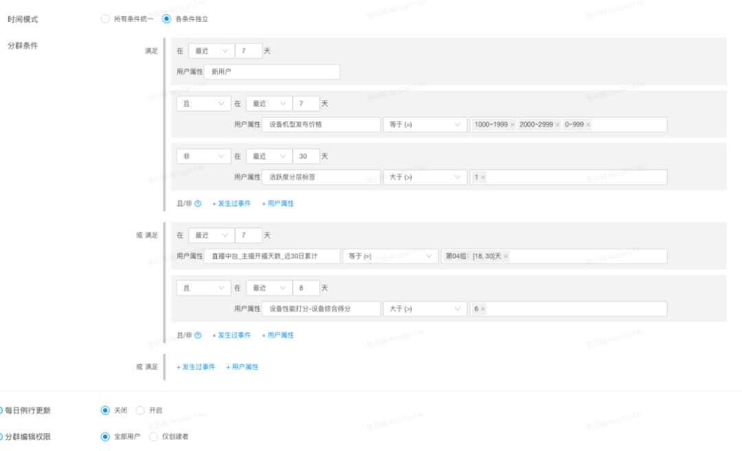 人群包按照一定的规则划分为多个区间,任意两个区间之间的人群包没有交集