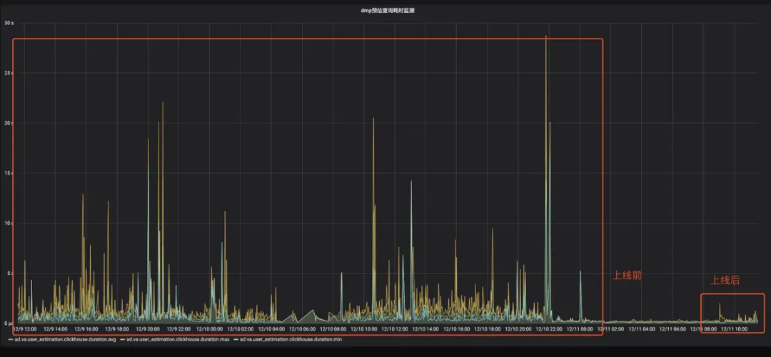 查询 avg/pct99/max 都下降明显,pct99 从 5 s 降低到 2 s
