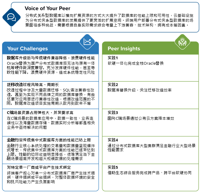 ▲ IDC PeerScape: 分布式关系型数据库应用挑战与同业洞察