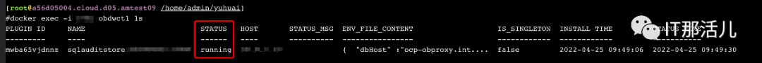 docker exec -i sqlauditstore-xxx obdwctl start sqlauditstore -e obdw/plugins/sqlauditstore.json