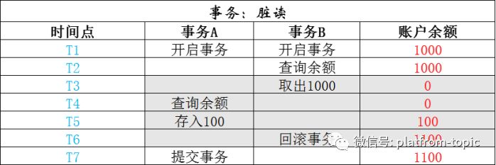 脏读:比如有两个事务并行执行操作同一条数据库记录,A事务能读取到B事务未提交的数据。如下图所示:事务B操作了数据库但是没有提交事务,此时A读取到了B没有提交事务的数据。这就是脏读的体现。