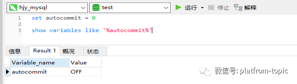 我们用数据库实例来演示一下脏读现象,首先我本地安装了mysql5.7,关闭数据库自动提交事务开关
