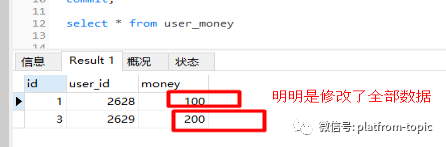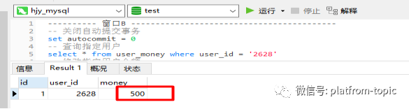select * from user_money where user_id = '2628'此时我们看看查询结果: