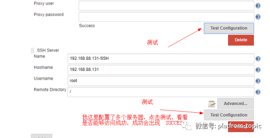 配置好了后,我们可以点击下方的Test Configuration按钮进行测试连接,当能够正常访问到时,则提示 success,否则会报错。这里可以校验配置信息是否有误。