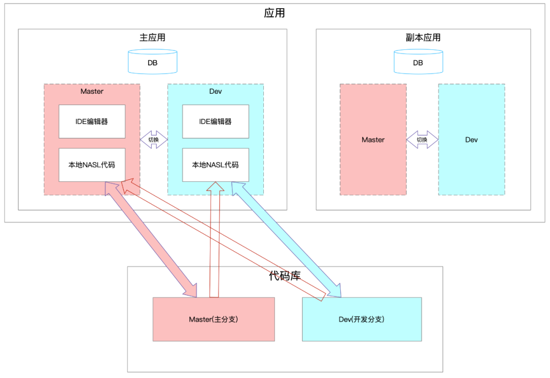 为更好地支撑以上三种情况下的软件协作开发,网易数帆在CodeWave智能开发平台实践中,在代码管理和代码合并两个方面分别采用了如下特色设计。