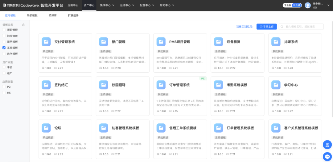 CodeWave还支持了给将开发好的应用导出成模版,并且给予模版创建新的应用。通过模版,一个应用就可以复制成多个隔离的应用,这样就可以满足不同客户定制版本的软件长期升级与维护。