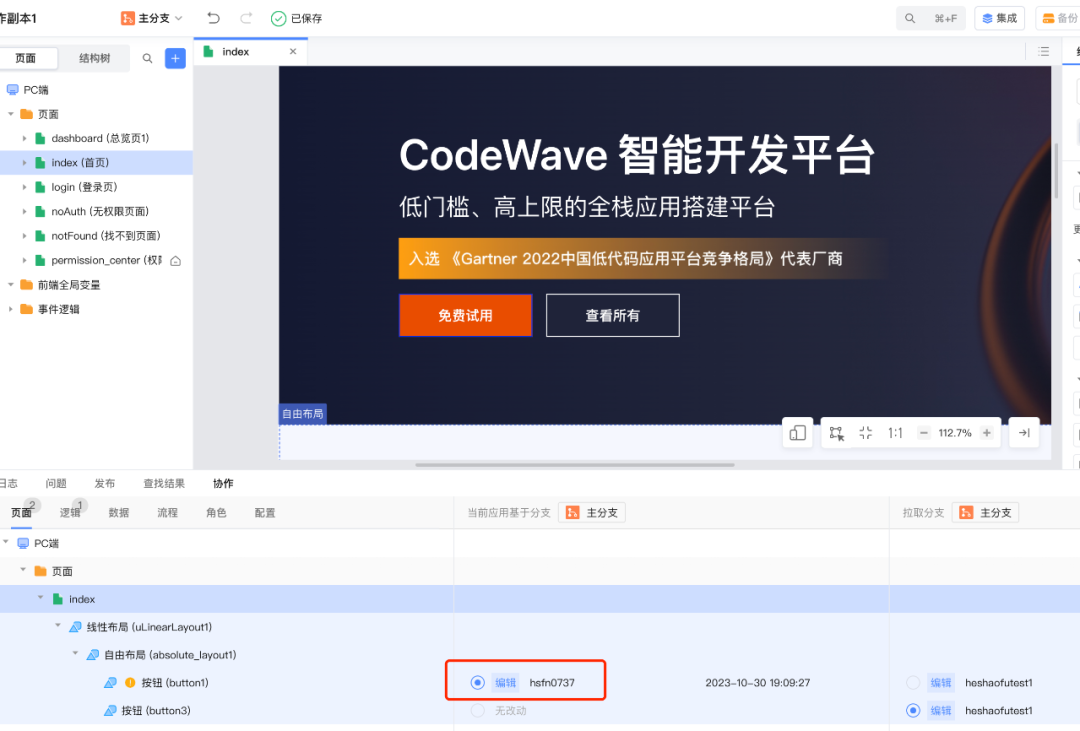 除了主分支外,CodeWave支持创建自定义的开发分支。