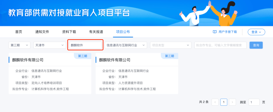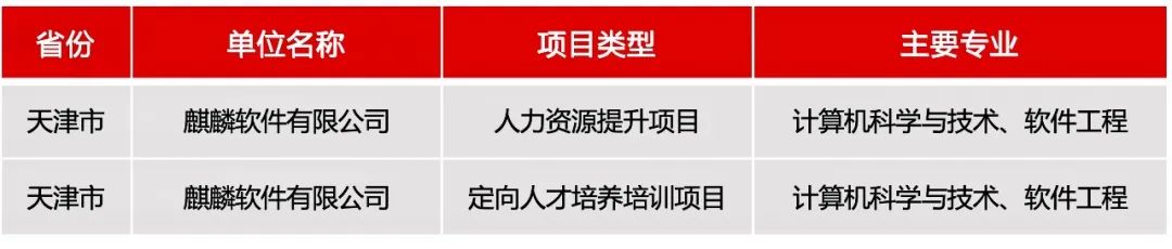为深入贯彻落实党中央、国务院“稳就业”“保就业”决策部署,坚持就业优先战略,深化产教融合、校企合作,麒麟软件自2021年教育部开展首期供需对接就业育人项目申报以来,连续三次成功申报该项目,并入选项目申报指南企业。为积极响应教育部高校学生司号召,根据教育部《关于征集第三期供需对接就业育人项目的函》要求,麒麟软件“定向人才培养培训项目”、“人力资源提升项目”现面向全国高校征集,欢迎报名。