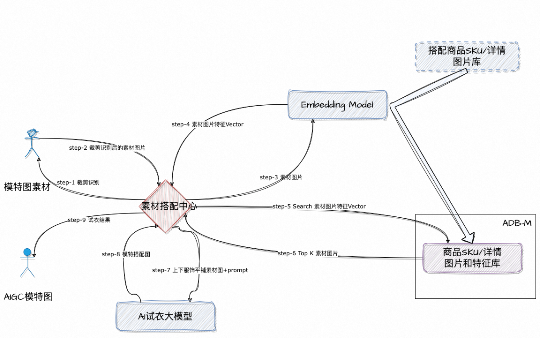 在AI试衣间功能的背后,阿里云瑶池旗下的云原生数据仓库AnalyticDB MySQL提供了高维向量低延时的在线向量召回检索服务,下面将进行介绍。