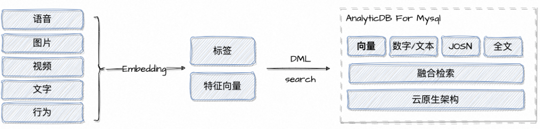 云原生数据仓库AnalyticDB MySQL是一款阿里云数据库团队自研的云原生数据仓库产品,支持向量和结构化数据的融合检索,在各种条件组合的查询的场景中,达到超过99%的召回率。它的数仓和湖仓提供了非结构化数据的存储和通用数据库检索服务。通过深度学习网络完成推理,可以将非结构化数据转化成向量,提供基于向量的相似性检索。