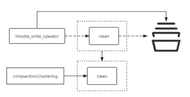 compaction/clustering执行。这样的好处是单个clean算子,不会因为其生成clean计划和执行导致局部某些Taskmanager出现热点的问题,极大程度提升了实时任务稳定性。
