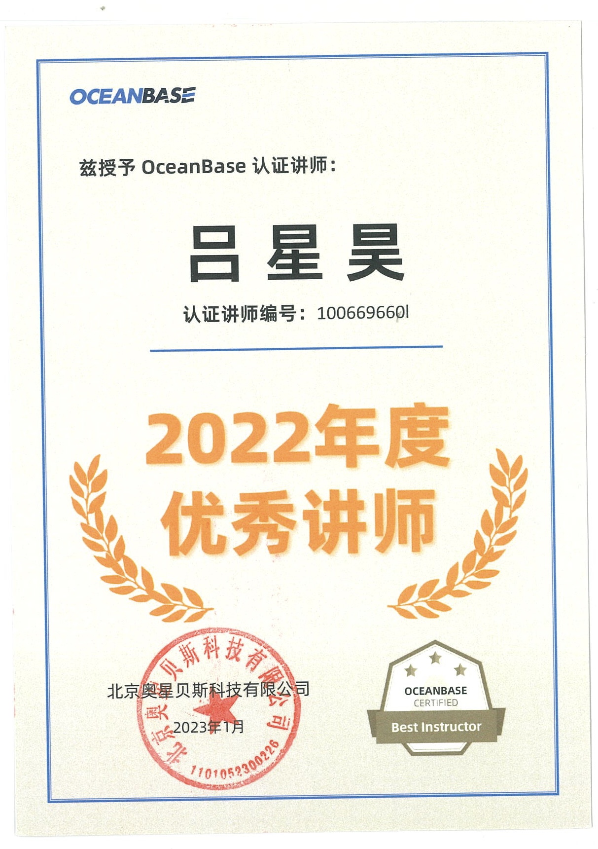OceanBase 认证讲师 OBCI Oracle认证OCM讲师、达梦认证讲师DM8-DCI