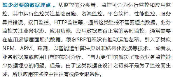 监控指标覆盖面了基础设施、平台软件、应用软件、客户体验等范围。从规范角度,将规范中编写的覆盖指标落实是一个难题,尤其是业务监控指标。以下整理几点经验总结,希望给大家有帮助,