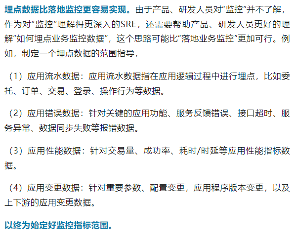 技术社群的这篇文章《业务监控指标数据经验分享 | 运维进阶》针对业务监控指标数据经验进行了一些分享,可以学习借鉴。
