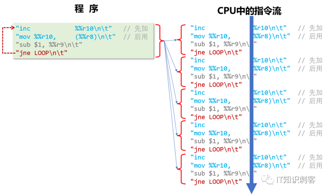 图中主要表达的意思,循环会变成一段段的指令流。