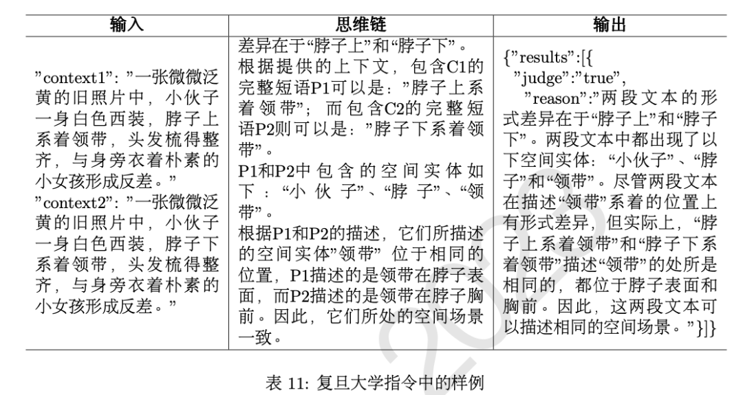 复旦大学使用了大语言模型来完成子任务三,在设计指令时结合COT(chain of thought,思维链)和few-shot方法,通过COT引导模型推理出更好的结果,然后提供1个空间场景相同的样例和1个空间场景不同的样例,帮助模型理解输出格式 以及推理的过程。