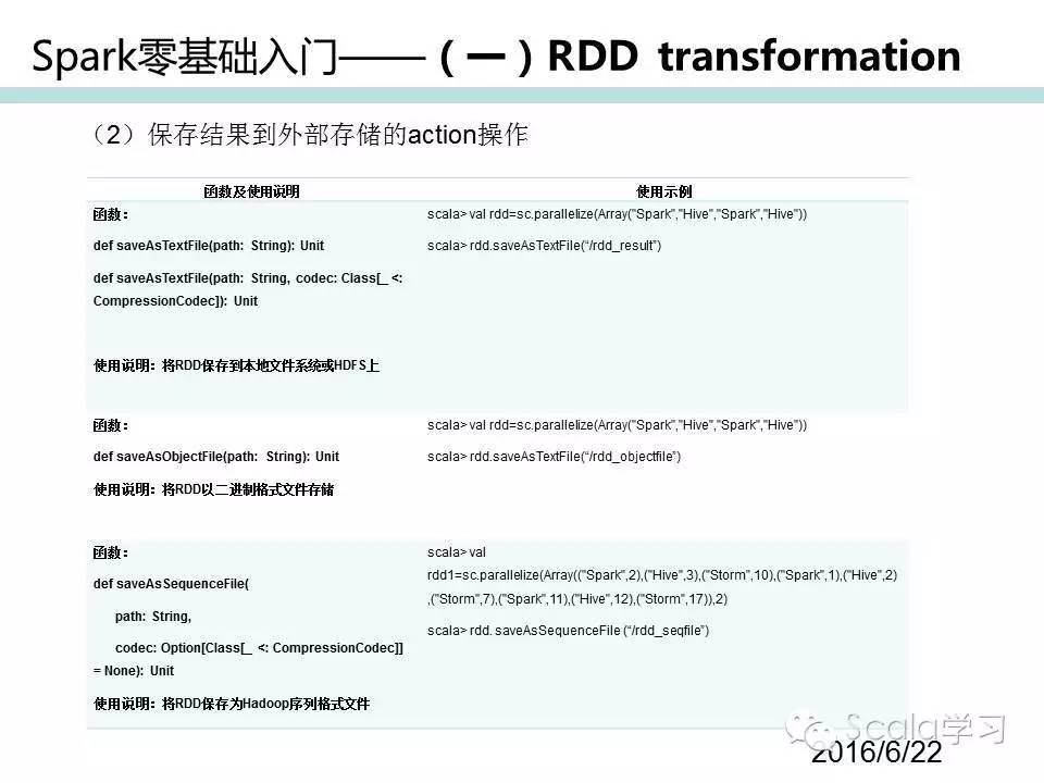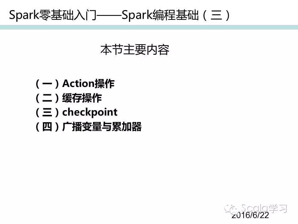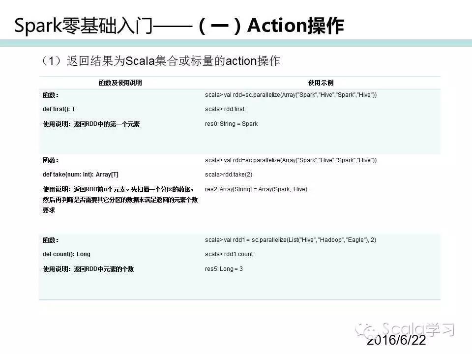 RDD action操作:通过大量案例说明RDD中常用的action操作的使用,包括两部分:返回结果为Scala集合的action操作如first、count、collect、takeOrdered、aggregate、reduce、fold等;保存结果到外部存储的action操作如saveAsTextFile、saveAsHadoopFile、saveAsObjectFile等. 介绍action 操作是如何触发Spark作业