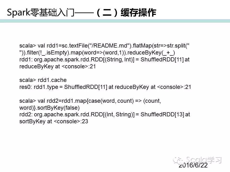 RDD缓存:通过一个求TopN的案例说明使用RDD缓存与不使用RDD缓存的区别,据此介绍RDD缓存的原理。