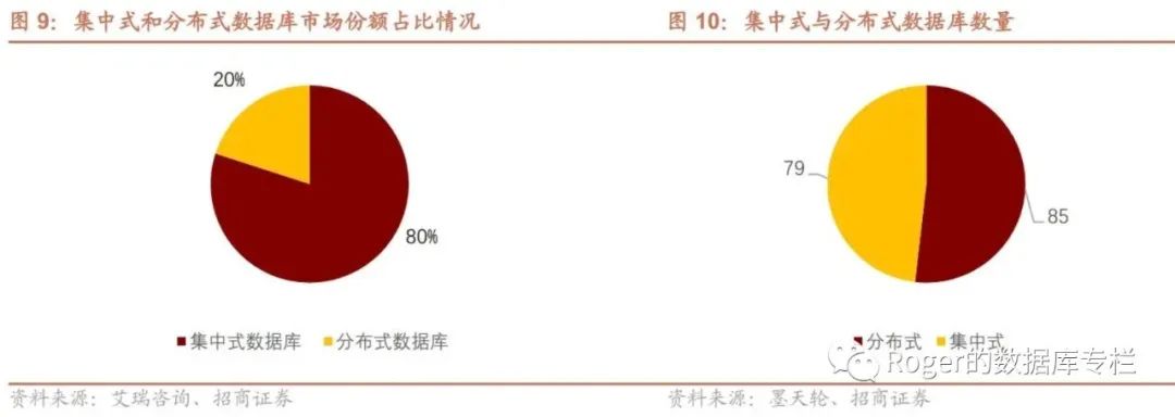另外国产关系型数据库在分布式和集中式 两个方向上的占比是怎样的呢?针对这一点,我们也可以参考一些券商的评估报告,也可以进行一些参考,比如来自招商证券的评估报告: