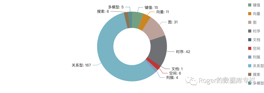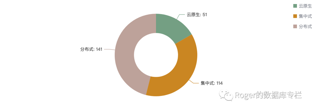 大致看了一下,一共统计了10种类型的数据库,其中最主要的还是关系型数据库,占了167种,由此可见关系型数据库仍然是重头戏。如果要按部署方式来看的话,大致分为3种部署形态:分布式、云原生、集中式。