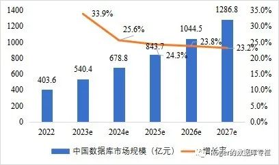 2022年国内数据库规模403亿,2023年将达到540亿左右。