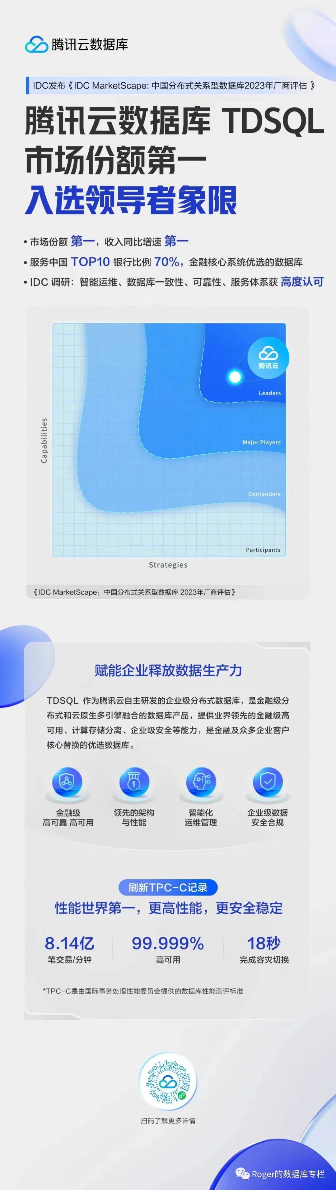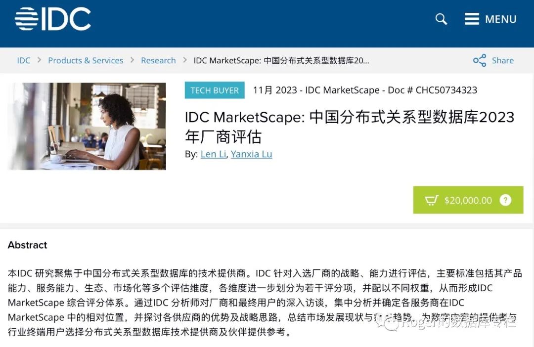 前不久知名权威咨询机构IDC发布了一份《IDC MarketScape 中国分布式关系型数据库2023年厂商评估》,看上去还是非常有含金量。