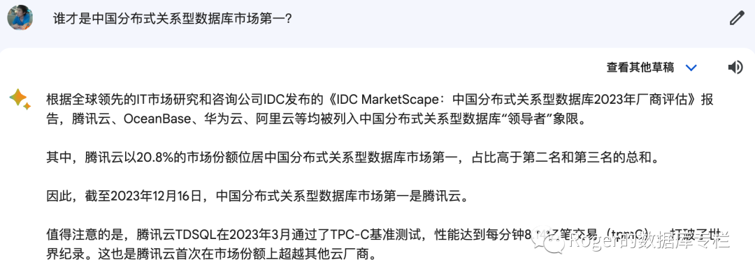 从图上来看领导者象限有OceanBase,腾讯云,阿里云,华为云和Goldendb。这一点我认为还是相对靠谱的,至于份额和排名不清楚了。