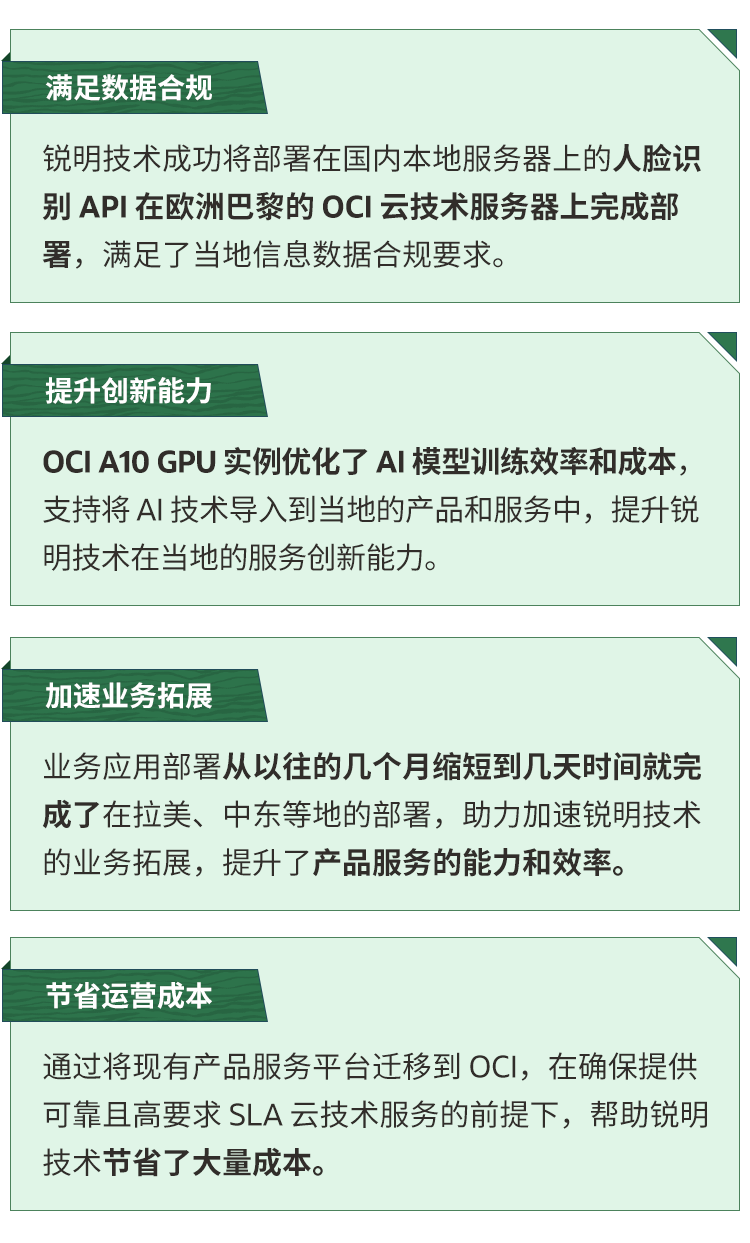 在实际使用后,OCI 不负众望,为锐明技术带来了切实收益: