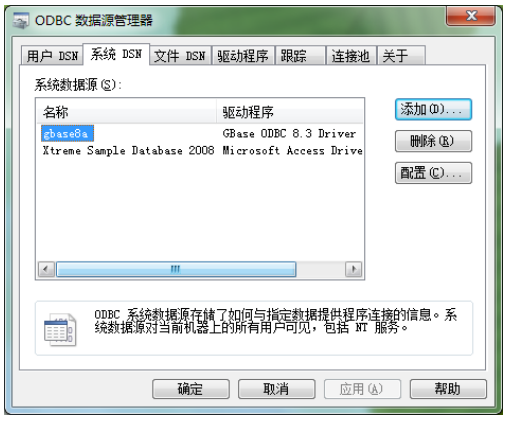 2) 双击管理工具,然后双击数据源(ODBC)。这时出现 ODBC 数据源管理对 话框,如下所示: