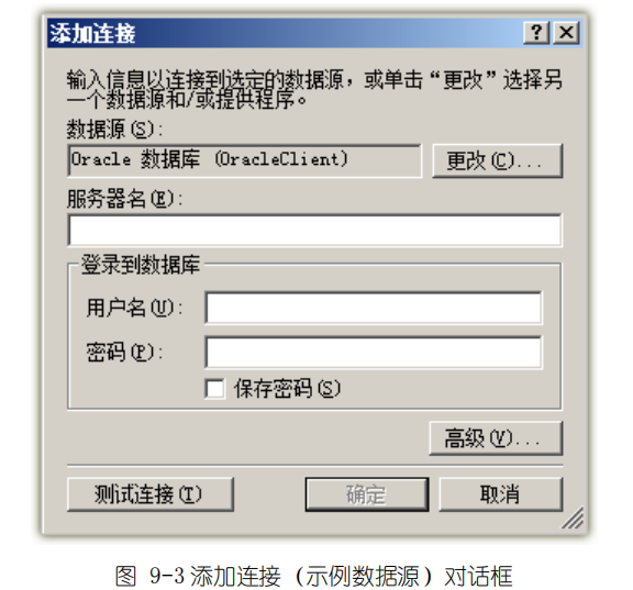 如果未出现‚更改数据源‛对话框,则需要在‚添加连接‛视图中点击‚更改按钮后会出现‚更改数据源‛对话框,如下图 9-3 所示。