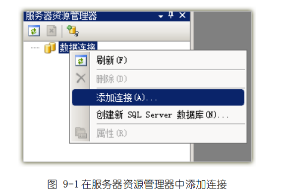 此章节主要介绍如何在 Visual Studio 开发工具的‚服务器资源管理器‛窗口中创建基于 GBASE南大通用数据源的数据连接。如果‚服务器资源管理器‛在 Visual Studio 开发工具打开后没有激活,可以选择‚视图‛菜单中的‚服务器资源管理器‛,如下图 9-1 所示。
