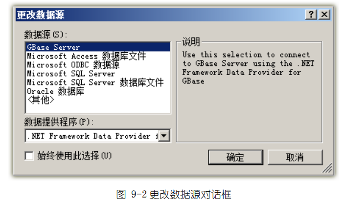 GBASE南大通用‚添加连接‛菜单命令执行后,会出现‚更改数据源‛对话框,如下图 9-2。