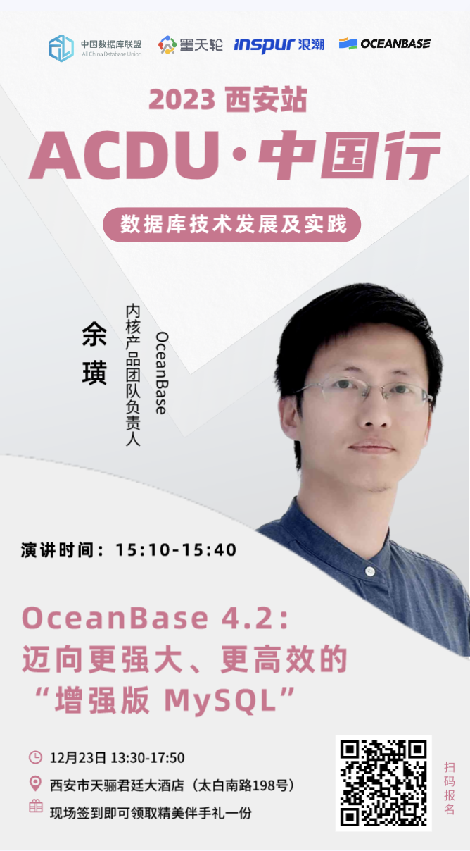 12月23日下午13:30,墨天轮社区举办的【ACDU中国行】第四期数据库主题交流活动将来到西安!