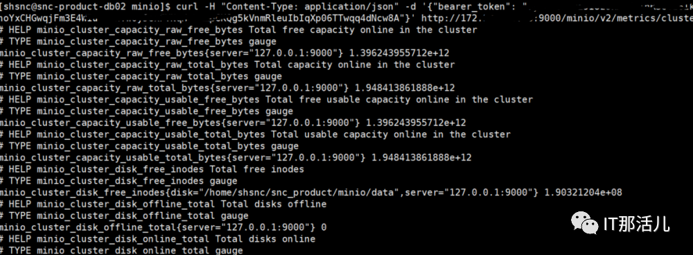 '{"bearer_token": "******token_test**********"}' http://127.0.0.1:9000/minio/v2/metrics/cluster