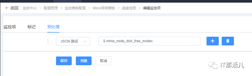 JSON路径的取值【$.minio_node_disk_free_inodes】中的minio_node_disk_free_inodes就是json输出的key。