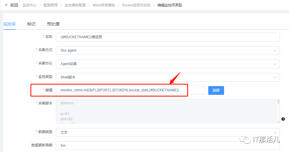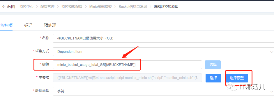 和监控依赖性一样,主要项时需要选择【选择原型】,键值[]里携带变量【{#BUCKETNAME}】