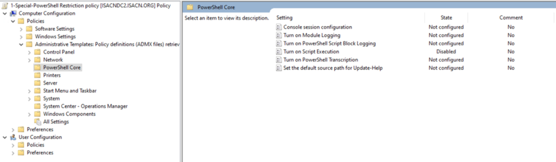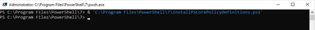 同样的,PowerShell 7.x 所使用的组策略配置也与 Windows PowerShell 5.x 不同,首先需要在 PowerShell 7.x 中运行以下脚本 C:\Program Files\PowerShell\7\InstallPSCorePolicyDefinitions.ps1 来安装相关组策略配置选项,