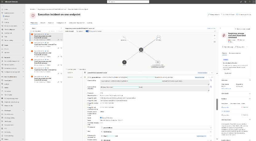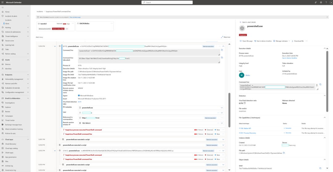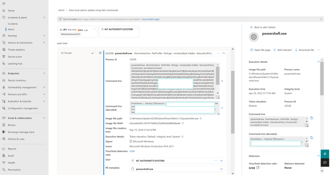 Microsoft Defender for Endpoint 对 PowerShell 具有非常完善的安全防护能力,例如以下警告示例,可以直接解码相关的命令执行:
