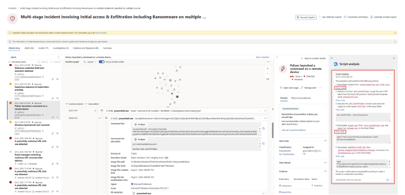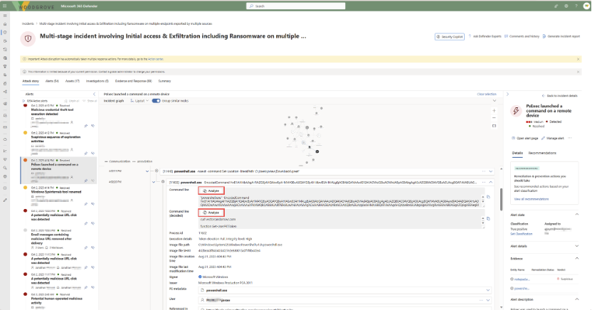 并且在结合 Microsoft Security Copilot 这个强大的安全 AI 助手时,它甚至可以直接帮您完成更加深入和完整地技术分析和调查,让您更进一步事半功倍: