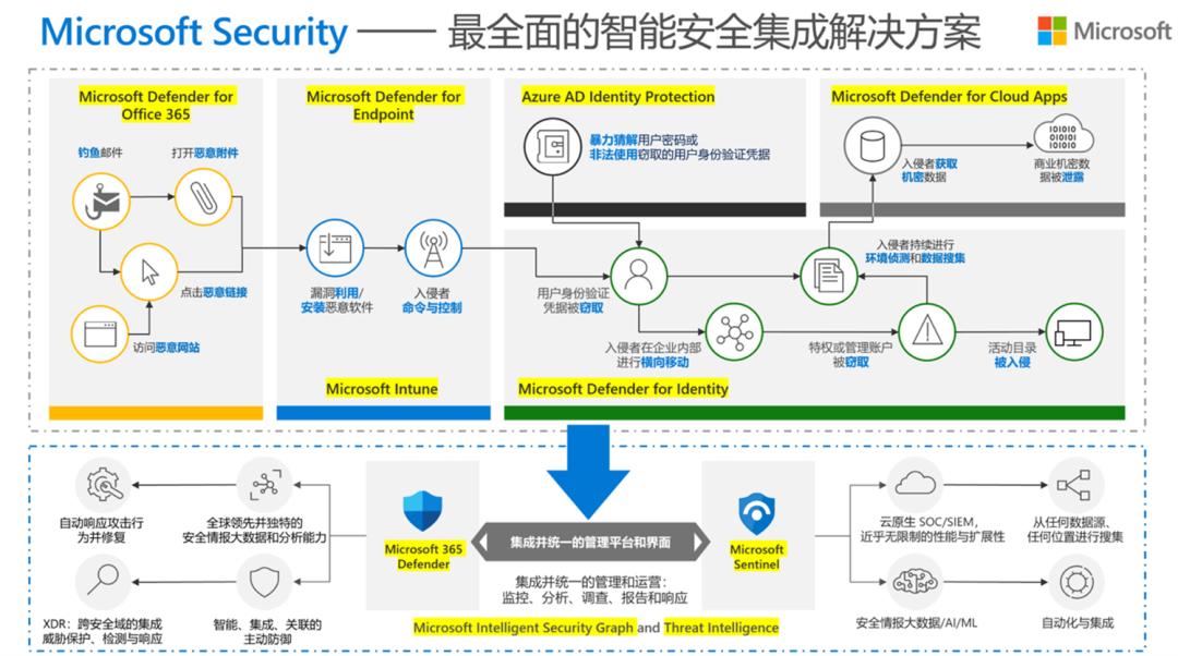 除了部署 Microsoft Defender for Endpoint 来保护端点安全之外,后续也建议通过完善而强大的微软智能集成安全解决方案来守护企业网络安全。关于微软的智能集成安全解决方案的相关概要说明可以参考以下架构图。无论是安全、身份、端点、数据、SOC 还是隐私合规,所有微软安全产品系列作为一个跨云和跨平台的智能集成综合安全解决方案协同工作,帮助客户实现统一集成的、自动化的安全防护和管理,利用全球领先地安全产品和技术,在避免冗余和重叠的同时,最大限度地发挥其现有产品的价值,同时简化包含部署成本、管理成本在内的总体拥有成本,并降低整体复杂性。