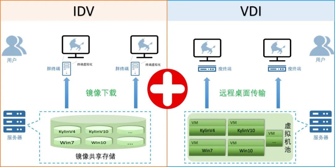IDV架构有效的减轻了服务器的计算与存储压力,释放了终端算力,使得终端的硬件独立性更高,服务端成本可控,终端计算节点延展性优。VDI采用“集中存储、集中计算”方式,数据安全性高,终端计算节点可移动性强。双架构协同能更好释放“云”、“端”算力的可调节能力。