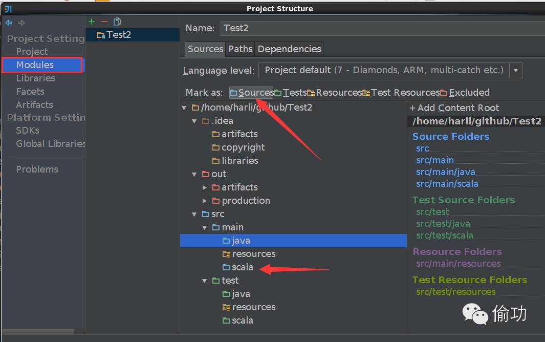 确认将指定的目录Mark as为正确的Sources或Tests等。
