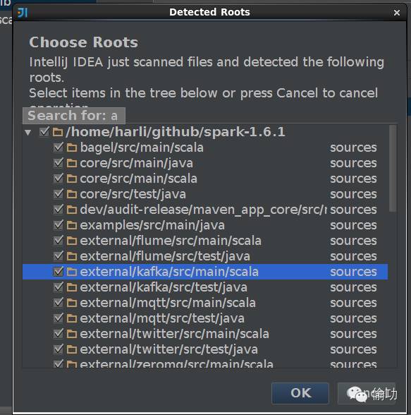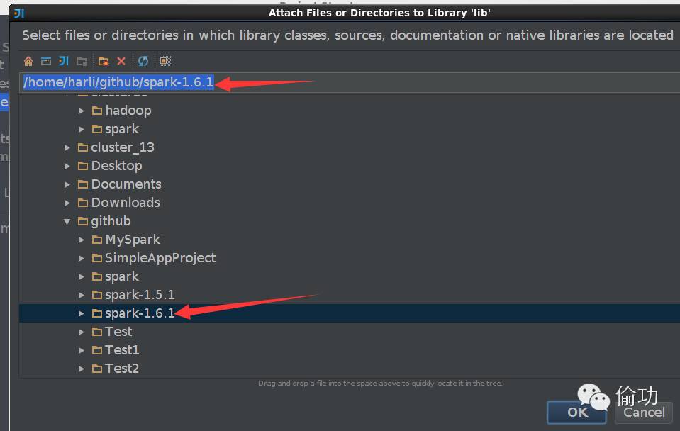 点击添加后,选择spark-1.6.1源码目录,然后点击OK: