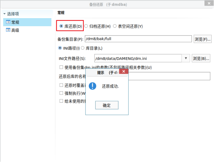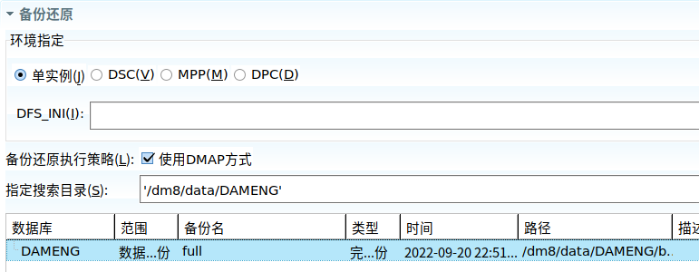 RMAN> restore database '/dm8/data/DAMENG/dm.ini' from backupset '/dm8/bak/full';