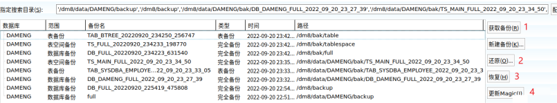 DM还原和恢复:备份的逆过程。还原是将备份集中的数据内容(数据文件、数据页、归档文件)重新写入目标数据文件的过程。恢复则是通过重做归档日志,将数据库恢复到备份结束时的状态,也可以恢复到指定的时间点和LSN。