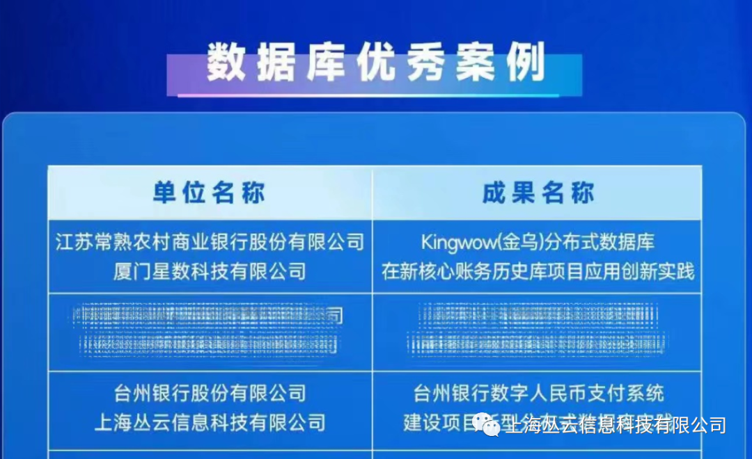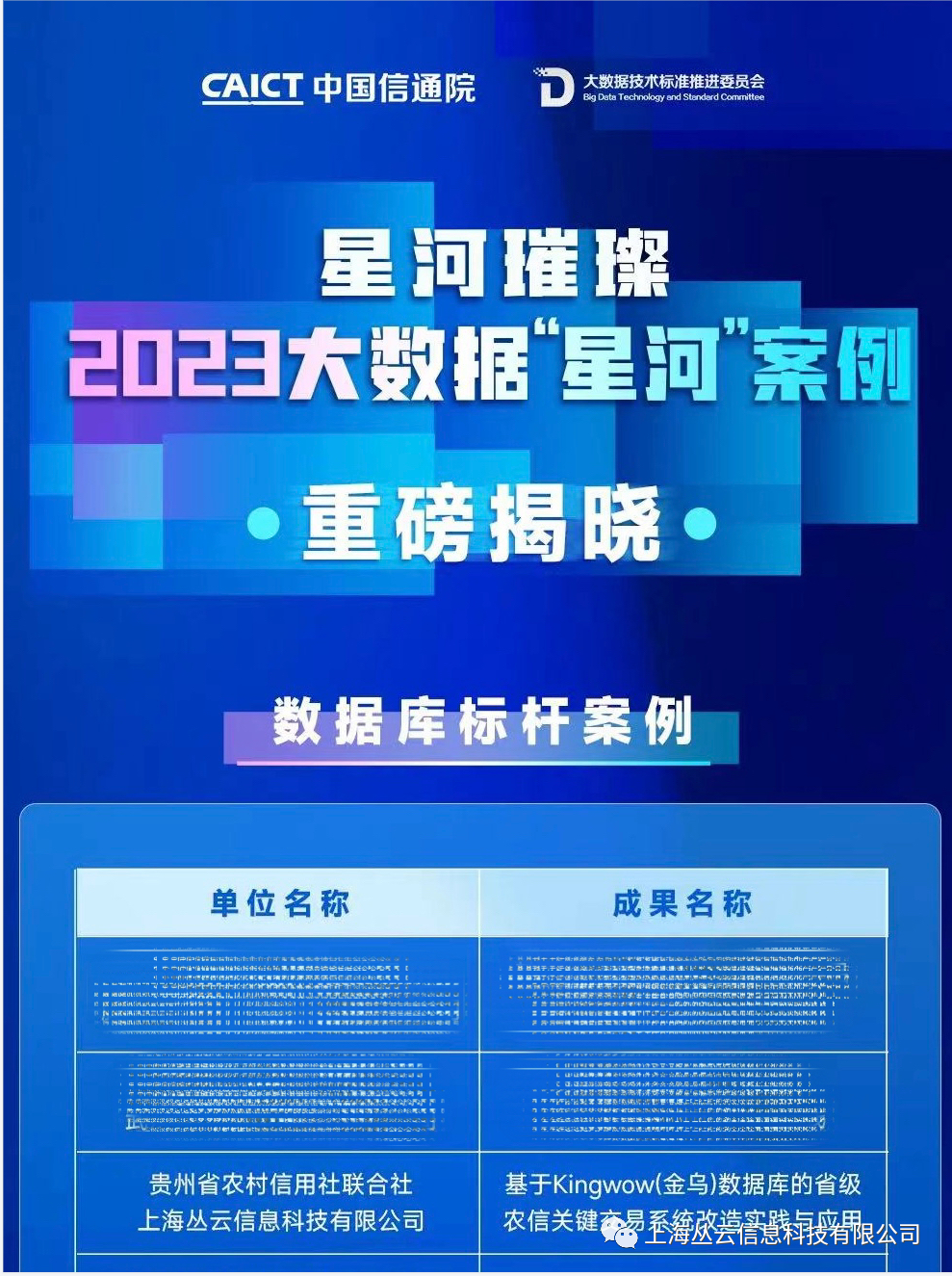 12月6日,由中国信息通信研究院和中国通信标准化协会大数据技术标准推进委员会(CCSA TC601)共同组织的2023大数据“星河(Galaxy)”案例评选结果正式公示。由贵州省农村信用社联合社与上海丛云信息科技有限公司申报的“基于Kingwow(金乌)数据库的省级农信关键交易系统改造实践与应用”案例、台州银行股份有限公司与上海丛云信息科技有限公司申报的“台州银行数字人民币支付系统建设项目新型分布式数据库实践”案例、江苏常熟农村商业银行股份有限公司与厦门星数科技有限公司联合申报的“Kingwow(金乌)分布式数据库在新核心账务历史库项目应用创新实践”案例历经多环节严苛评审,分别荣获数据库标杆案例和优秀案例。