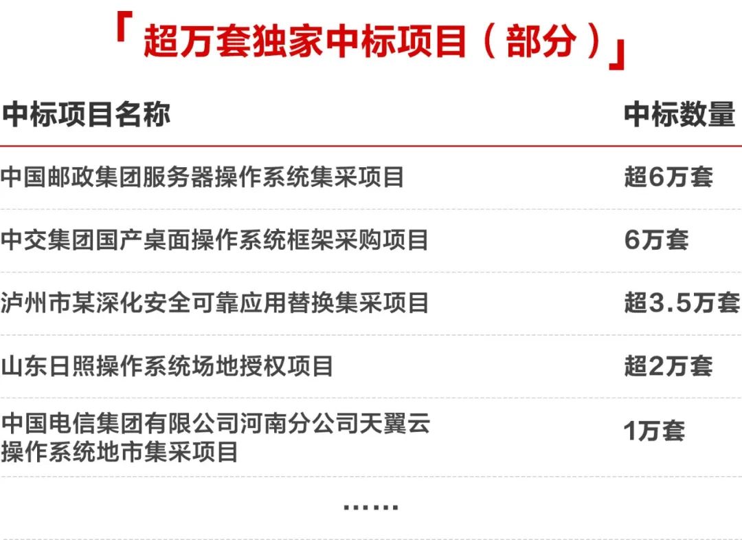 2023年,麒麟操作系统持续赋能行业客户和各级党政机关的数智化转型升级,在全国范围内多次中标桌面和服务器操作系统项目,无论是央国企还是关基行业,麒麟软件以安全可信的性能、好用易用的产品,成为用户的首选!
