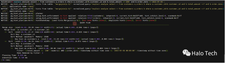 halo0root=# explain analyze select * from customers a,orders b where a.customer_id=b.customer_id;