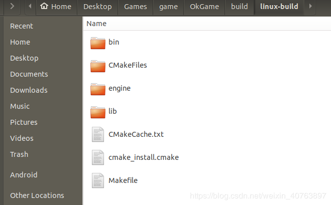 make编译完成后,所有的东西都会生成在~/Desktop/Games/game/OkGame/build/linux-build/bin目录里:
